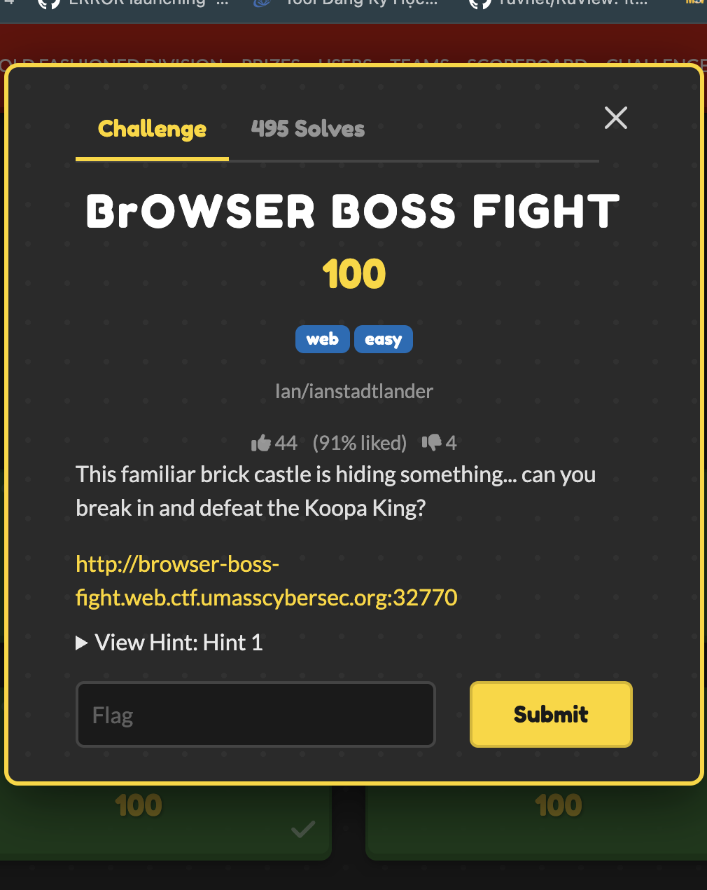 Flag: UMASS{br0k3n_1n_2_b0wz3r5_c4st13}